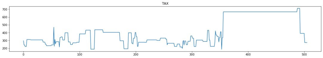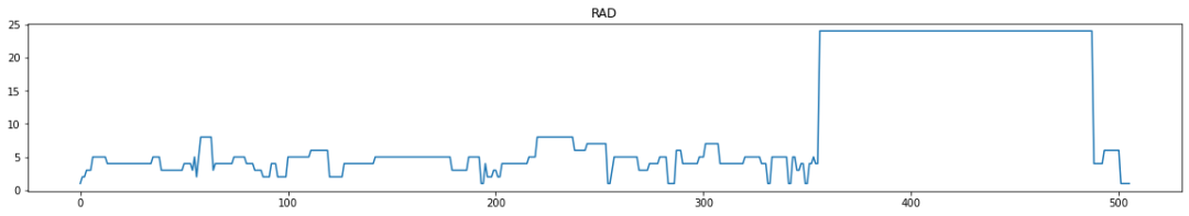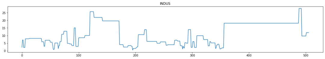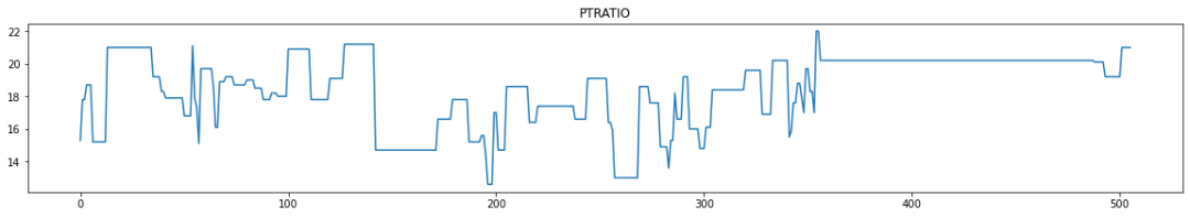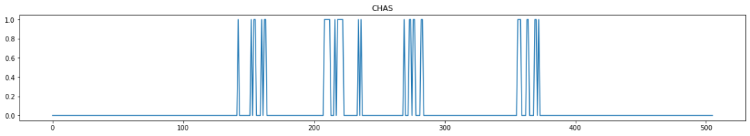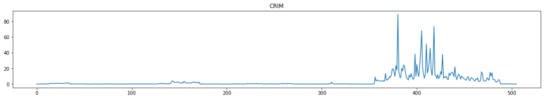 for i in range(0,boston_df.shape[1]):        plt.figure(figsize=(20,3))        plt.title(boston_df.columns[i])        plt.plot(boston_df[boston_df.columns[i]])        plt.show()