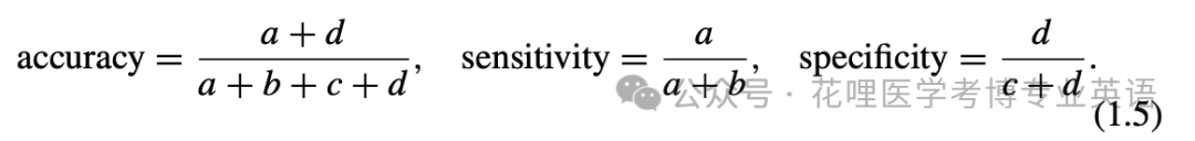 While accuracy does provide a useful metric for the overall performance of a classifier, it does not distinguish区分 between the misclassification of a benign lesion as malignant (type I error) and the misclassification of a malignant lesion as benign (type II error). Since this distinction区别 is particularly important in the context背景 of medicine, two additional metrics are often used to report classification results. Denoting表明,指代 the malignant class as positive (for cancer) and the benign class as negative, the two metrics of sensitivity and specificity are defined, respectively, as