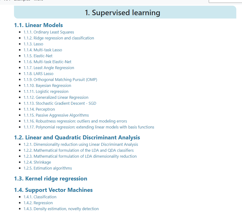 https://scikit-learn.org/stable/supervised_learning.html#supervised-learning
