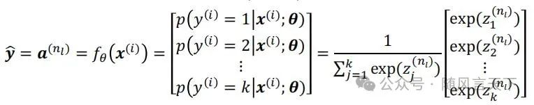 我们可以看到,在输出层中使用的Softmax函数可以由下式表达: