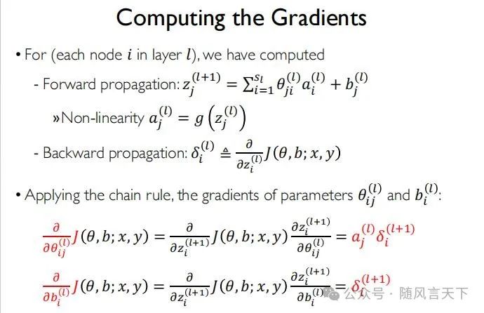 而对于最后的输出层,根据链式法则,我们可以得到: