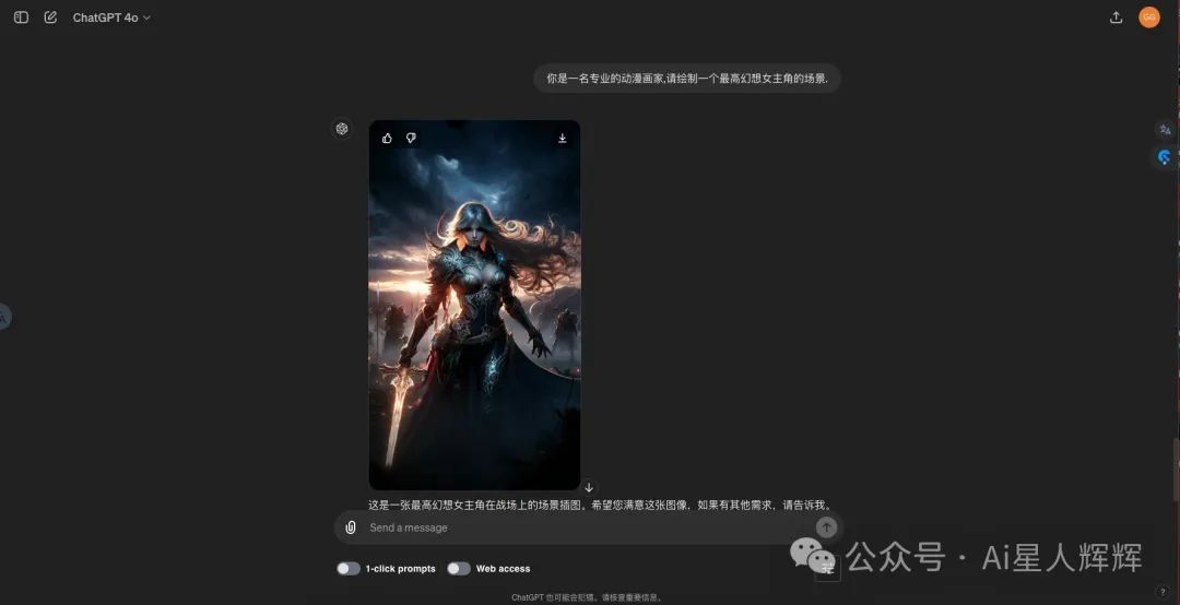 你是一名专业的动漫画家。请绘制一个最高幻想女主角的场景,每生成一张后继续生成,共三次。