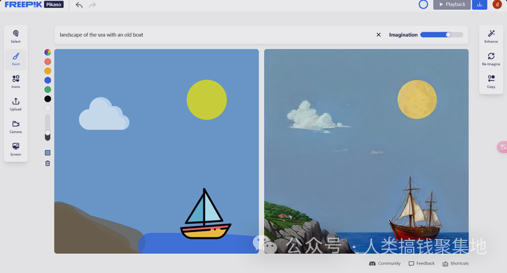 Pikaso,免费的在线实时涂鸦出图工具,借助Freepik背后庞大的图库,Pikaso的实时生成功能效果自然也不错。用户只需快速绘制草图即可创建他们能想象到的任何图像。它不仅仅是一个人工智能工具,它是你创意本质的延伸。
