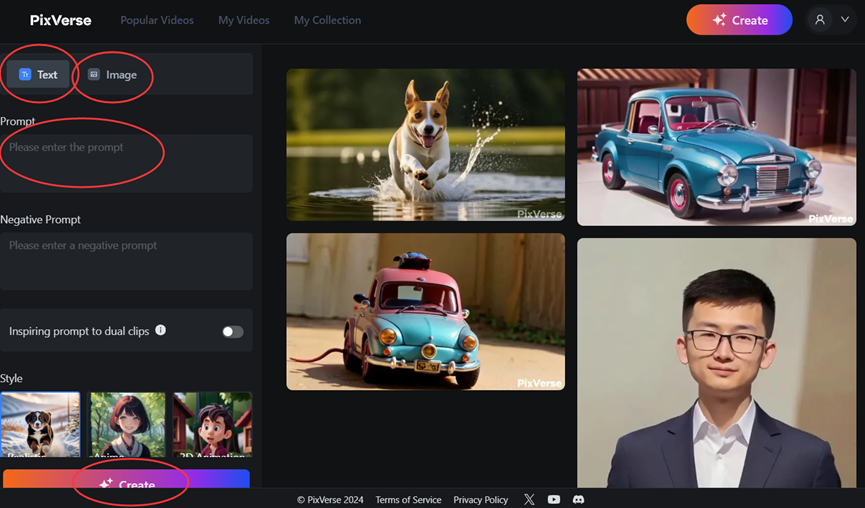 2.当前只有文生视频和图生视频两种功能,不过文生视频可以设置Realistic(写实)、Anime(动画片)、3D Animation(三维动画)、CG等视频样式。