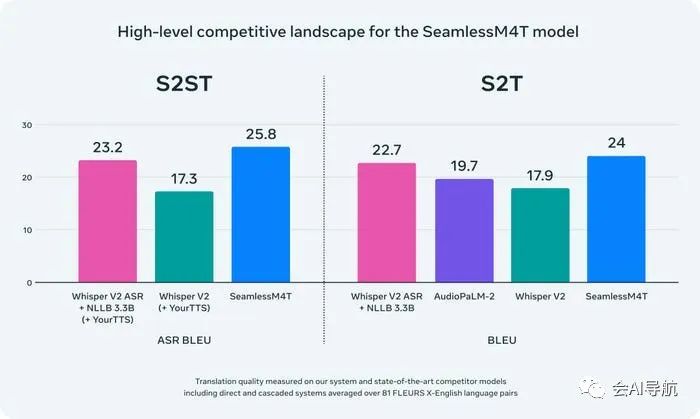 SeamlessM4T 被发现优于 AI 模型,包括 OpenAI 的 Whisper v2 和 Google 的 AudioPaLM-2。