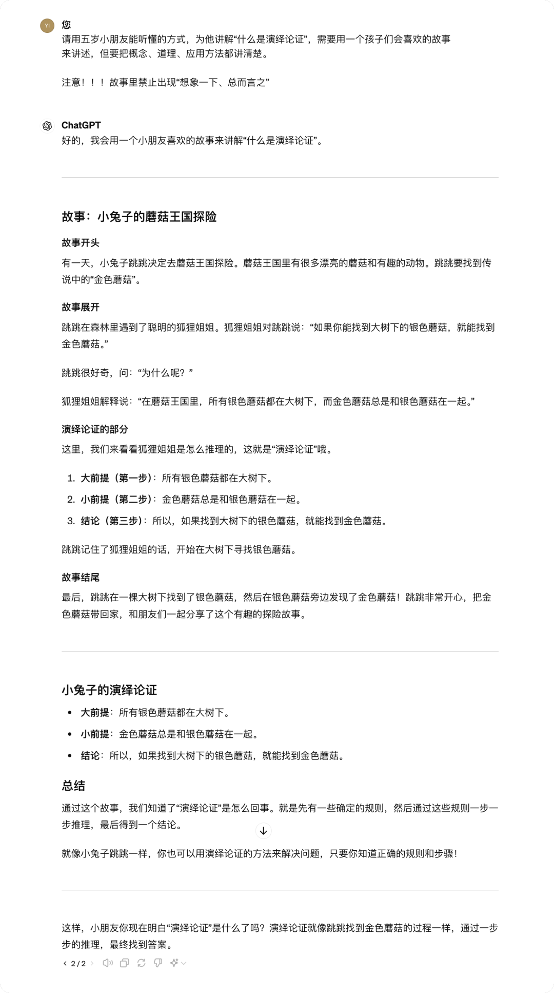 请用五岁小朋友能听懂的方式,为他讲解“什么是演绎论证”,需要用一个孩子们会喜欢的故事来讲述,但要把概念、道理、应用方法都讲清楚。注意!!!故事里禁止出现“想象一下、总而言之”